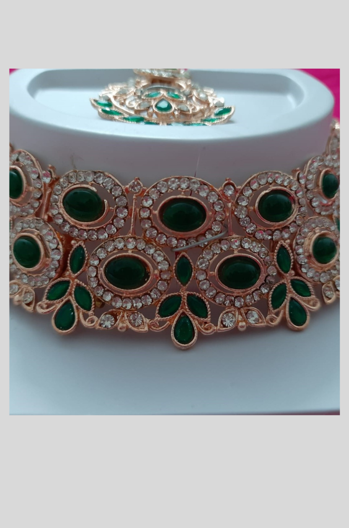 - The gold-plated Choker Set Comes along with Mang-Tikka and has Kundan Work on it which is a stunning and elegant jewelry designed for women who love statement pieces.